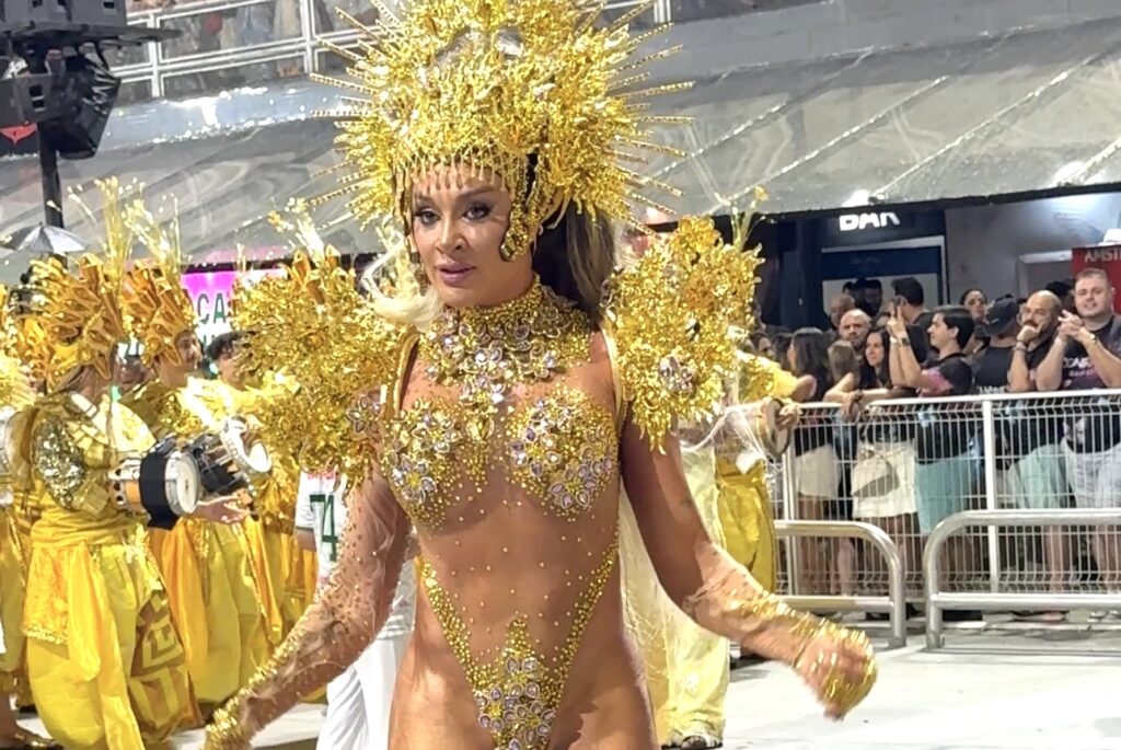 Com uma fantasia luxuosa e coreografias ensaiadas, Juju Salimeni esbanjou confiança durante todo o percurso. A rainha de bateria manteve o sorriso no rosto e fez questão de interagir com os foliões nas arquibancadas, reforçando o clima de celebração que marcou a noite das escolas mais bem colocadas do Carnaval.